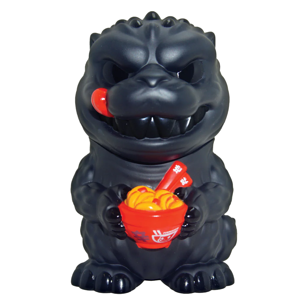 Extra Spicy Godzilla brings the heat to the Rokimoto universe. This limited 4-inch figure reimagines the King of the Monsters in a bold black-on-black finish, contrasted by a bright red ramen bowl for that signature Rokimoto flair. Clean sculpt details and a sleek matte look make this variant stand out without needing flames or gradients. Limited to 1,234 pieces, this Extra Spicy edition is a must-have for collectors who want a rare and striking take on Godzilla.