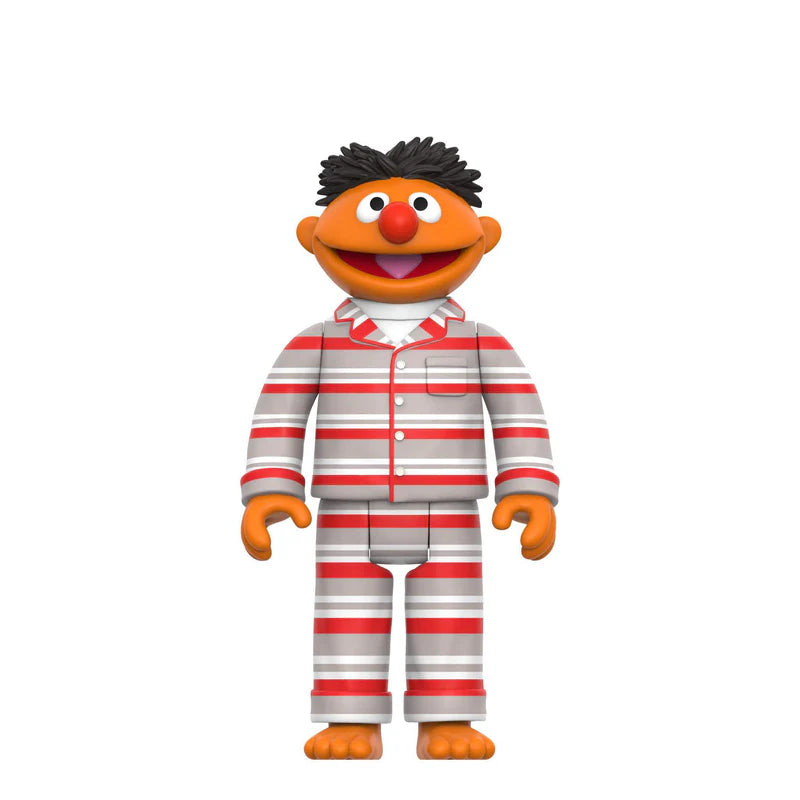 Lights on and strike up the band! No one’s more excited than Ernie to sing the praises of sleep—right in the middle of the night. Bring him home as a ReAction Figure in the cutest striped pajamas. This articulated 3.75” scale figure is inspired by the beloved character from Sesame Street. The Ernie in pajamas ReAction Figure comes in blister card-back packaging with Super7 artwork influenced by the original children’s television series. Grab an extra blanket and pillow and make this Ernie ReAction Figure feel right at home in your collection.